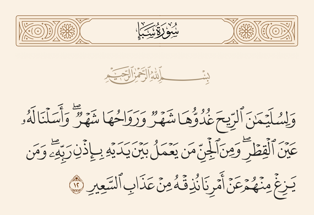 روي أن سليمان بن داود عليه السلام مر في موكبه والطير تظله والجن والانس عن يمينه وعن شماله بعابد من عباد بني إسرائيل، فقال: والله يا ابن داود لقد آتاك الله ملكا عظيما، فسمعه سليمان فقال: لتسبيحة في صحيفة مؤمن خير مما أعطي ابن داود، إن ما أعطي ابن داود يذهب وإن التسبيحة تبقى.