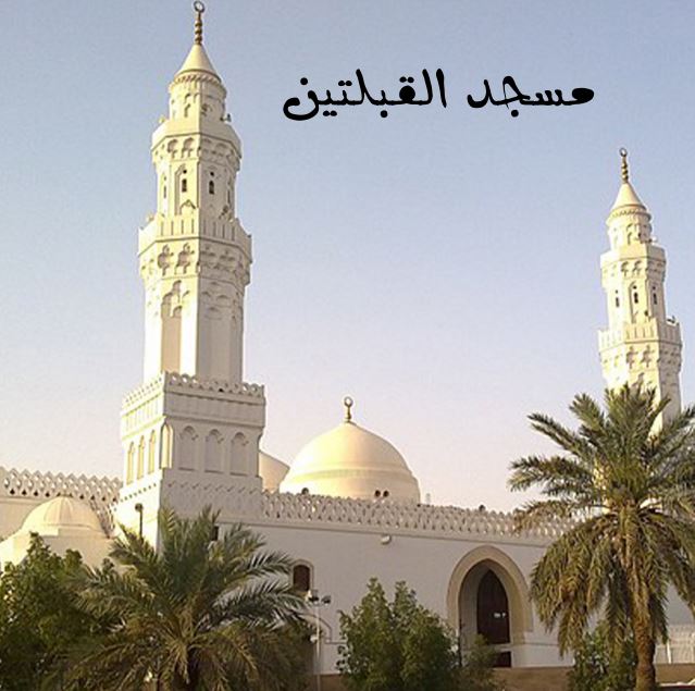 لمّا صلّى من الظّهر ركعتين جاءه جبرئيل فقال له‏ { قَدْ نَرى‏ تَقَلُّبَ وَجْهِكَ فِي السَّماءِ فَلَنُوَلِّيَنَّكَ قِبْلَةً تَرْضاها فَوَلِّ وَجْهَكَ شَطْرَ الْمَسْجِدِ الْحَرامِ‏ } ثمّ اخذ بيد النّبيّ فحوّل وجهه إلى الكعبة وحوّل من خلفه وجوههم حتّى قام الرّجال مقام النّساء والنّساء مقام الرّجال فكان اوّل صلاته إلى بيت المقدس وآخرها إلى الكعبة فبلغ الخبر مسجدا بالمدينة وقد صلّى اهله من العصر ركعتين فحوّلوا نحوالقبلة فكان اوّل صلاتهم إلى بيت المقدس واخرها إلى الكعبة فسمّى ذلك المسجد مسجد القبلتين‏