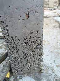 هو مظهر خرساني خشن وحجري مع وجود فراغات هوائية بين الركام. قد يحدث ذلك بسبب المياه الزائدة في الخلطة الخرسانية ، وعدم كفاية صلابة القوالب والعزل المائي ، إلخ.