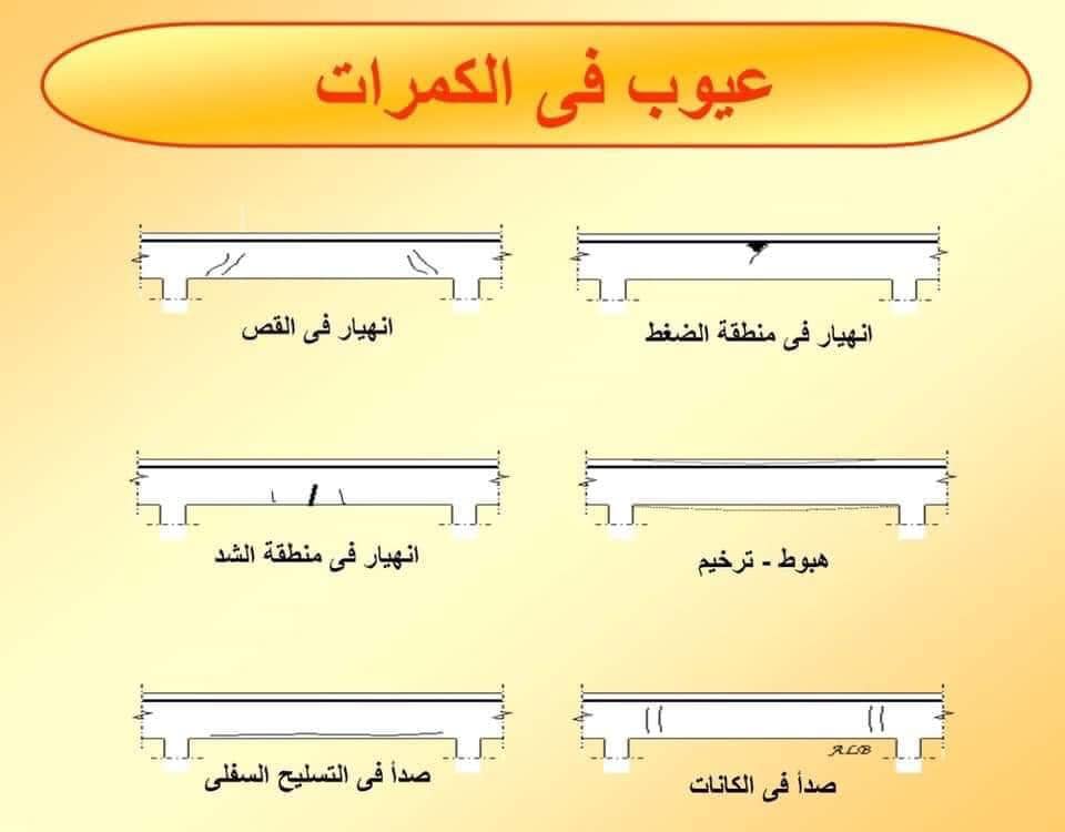 بعض اشكال العيوب الموجودة في الكمرات (الجسور) واسبابها ....
