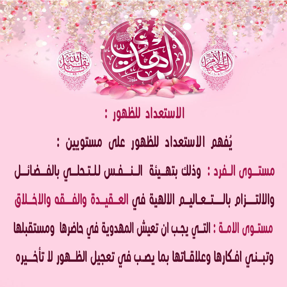 مستــــوى الامــــــة : التــــي يجب ان تعيش المهدوية في حاضرها ومستقبلها وتبــــنـي افــكارها وعلاقـــاتها بما يصــب في تعجيل الظــــــهور لا تأخـــــيره .
