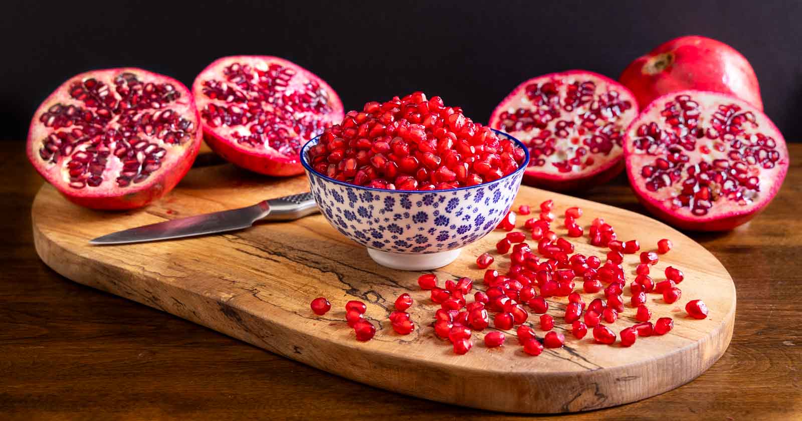 pomegranates are low in calories and fat but high in fiber, vitamins, and minerals.