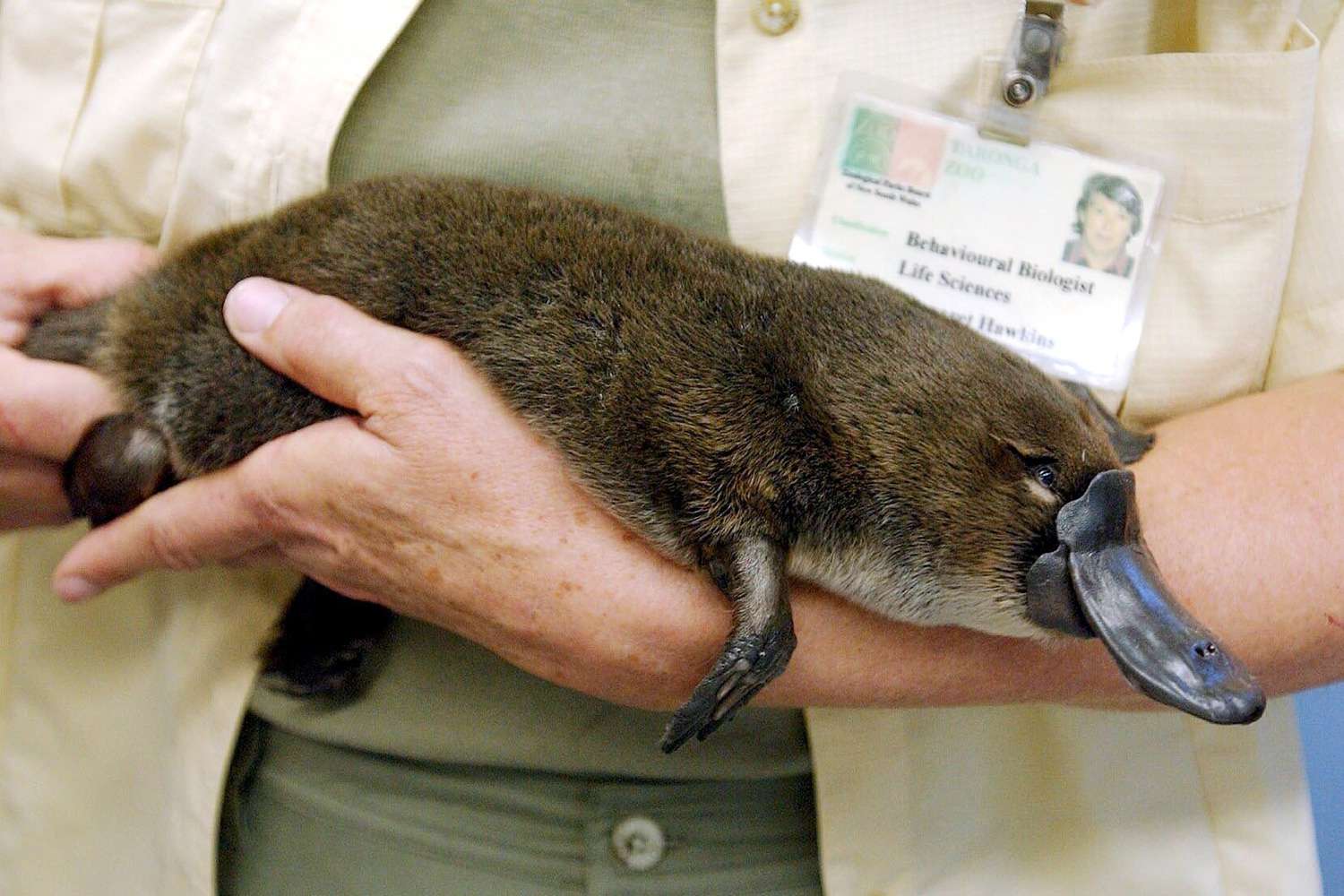 Most of the body is covered with fine, soft fur. The pelt color varies from dark amber to very dark brown on the platypus back and sides, and from grayish white to yellowish brown on the…