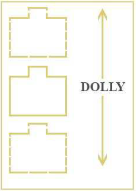 وتعني حركة الكاميرا والحامل معاً وبشكل مستقيم إلى الأمام أو إلى الخلف، وذلك لتقريب أو إبعاد الجسم، وتنقسم حركة الدوللي إلى dolly-in للاقتراب من المنظور، و dolly-out للابتعاد عن المنظور، ويطلق مصطلح zoom الزووم على الدوللي السريع جداً، ويُطلق أحياناً مصطلح الشاريوه على حركة الكاميرا على عربة جر.