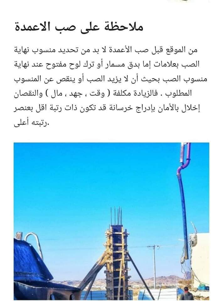 1- عدم اختبار الهبوط ومن الواضح ان الخرسانة كانت لدنة بقوة مما اصبح من الصعب تحركها .