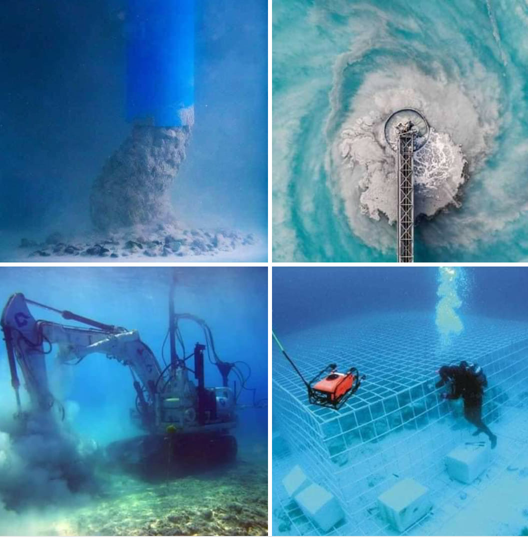 1- اذا تم استخدام الخرسانة العادية للصب تحت الماء فان الأسمنت سيتعرض للجرف ويسبب ضعف كبير لخرسانة لذلك يتم استخدام نوع من الاضافات تسمى (Anti washout Admixture) تعمل هذه المادة مثل الجل بين الاسمنت والماء.