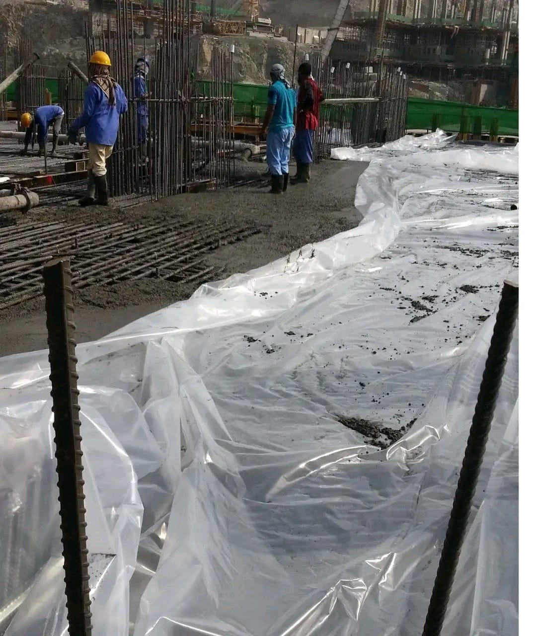 2_ استخدام النايلون او لفة على العنصر المصبوب للحفاظ على الماء او رطوبة الخرسانة من التبخر