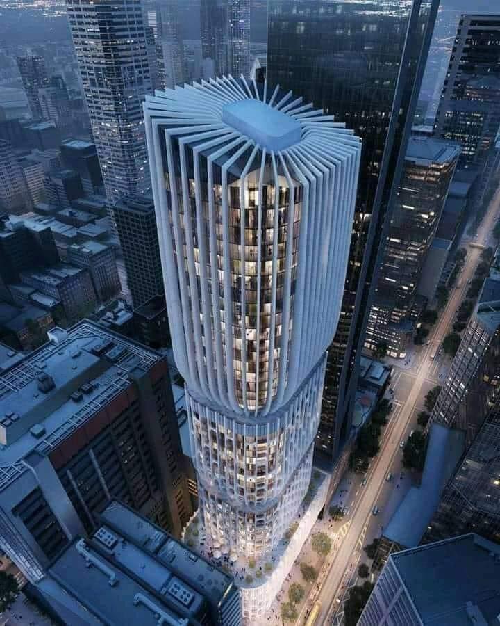 يتميز برج ملبورن بتصميمه الجريء والفريد الذي يتكون من عدة أجزاء متداخلة، والذي يشكل شكلاً هندسياً معقداً ومذهلاً. يتألف البرج من 88 طابقاً ويبلغ ارتفاعه 297 متراً، مما يجعله أحد أطول المباني في أستراليا.
