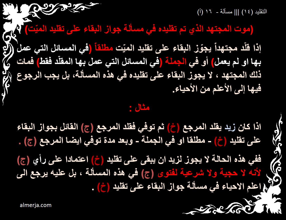 (موت المجتهد الذي تم تقليده في مسألة جواز البقاء على تقليد الميّت)
