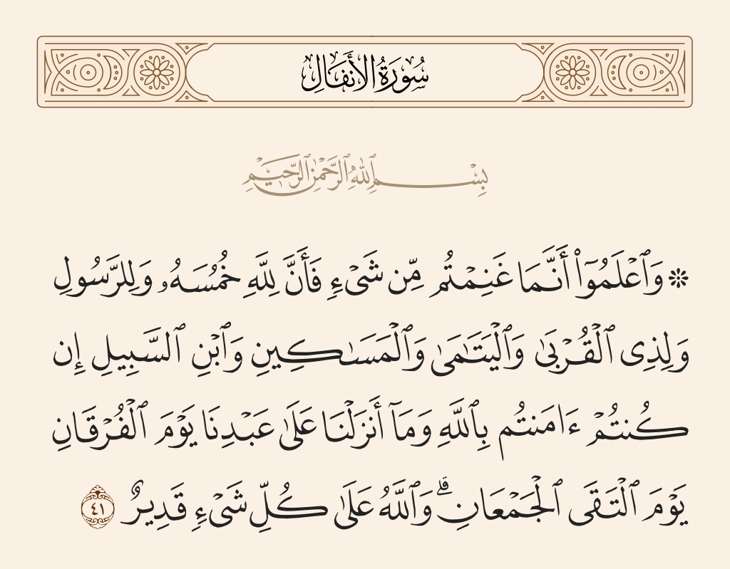 الخمس ح2 : إن دليل وجوب الخمس كما تعلم هو قوله تعالى: (( واعلموا إنما غنمتم من شيء فإن لله خمسه وللرسول ولذي القربى )) (الأنفال:41). والغنيمة هنا مطلق ما يغنمه المرء وما يكسبه من تجارة أو هبة أو بسبب الحرب الذي من خلاله يغنم على ممتلكات العدو, والفيء هو الغنيمة من العدو دون حرب ، والذين حصروا الخمس في غنيمة الحرب خالفوا ما عليه إطلاق المعنى وحصروه في غنائم الحرب من دون دليل, بل خلاف القرآن و اجتهادٌ مقابل النص .