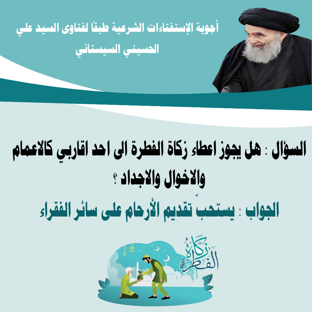 السؤال : هل يجوز اعطاء زكاة الفطرة الى احد اقاربي كالاعمام والاخوال والاجداد ؟
