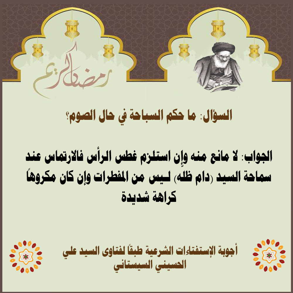الجواب: لا مانع منه وإن استلزم غطس الرأس فالارتماس عند سماحة السيد (دام ظلّه) لـيس من المفطرات وإن كان مكروهاً كراهة شديدة