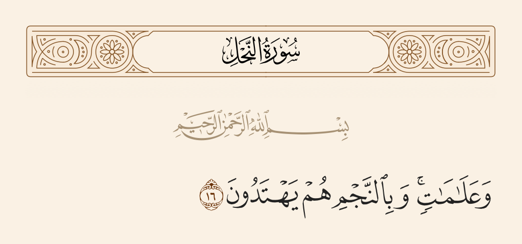 عَنْ أَسْبَاطِ بْنِ سَالِمٍ قَالَ: سَأَلَ الْهَيْثَمُ أَبَا عَبْدِ الله (عليه السّلام) وَأَنَا عِنْدَهُ عَنْ قَوْلِ الله (عَزَّ وَجَلَّ): {وَعَلَامَاتٍ وَبِالنَّجْمِ هُمْ يَهْتَدُونَ} فَقَالَ: "رَسُولُ اللَّهِ (صلى الله عليه وآله) النَّجْمُ، وَالْعَلَامَاتُ هُمُ الْأَئِمَّةُ (عليهم السلام)". [الكافي: ج1، ص 207].