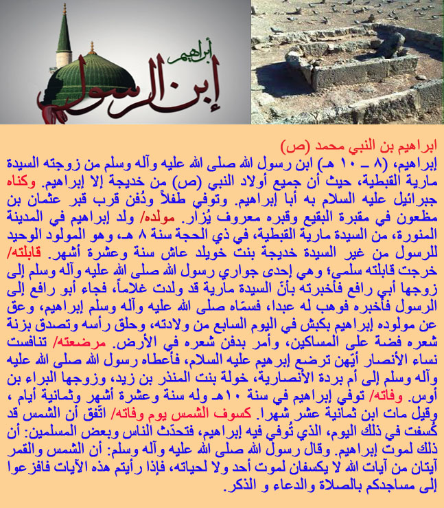 حدث في مثل هذا اليوم (18رجب):: عظم الله اجوركم بأستشهاد ابراهيم بن النبي محمد ( صلى الله عليه وآله)