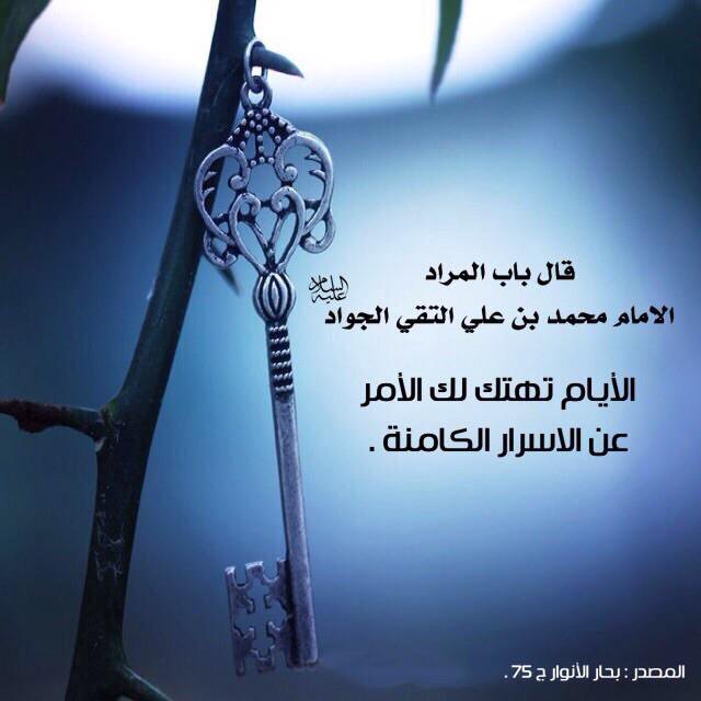 ورد عن الإمام محمد الجواد عليه السلام : ( الأيام تهتك لك الأمر عن الأسرار الكامنة) بحار الأنوار للمجلسي ج17 / 214