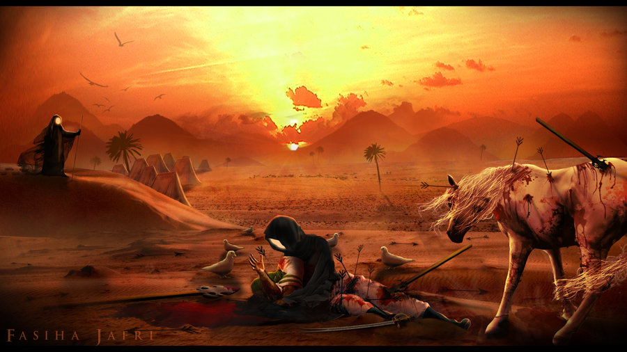 ويستمر ذلك اليوم الطويل ، لتكن الظهيرة صلاة الرأس على سنان الرمحِ، وسجادة الحياة صدر مهشم بحوافر الخيل ...