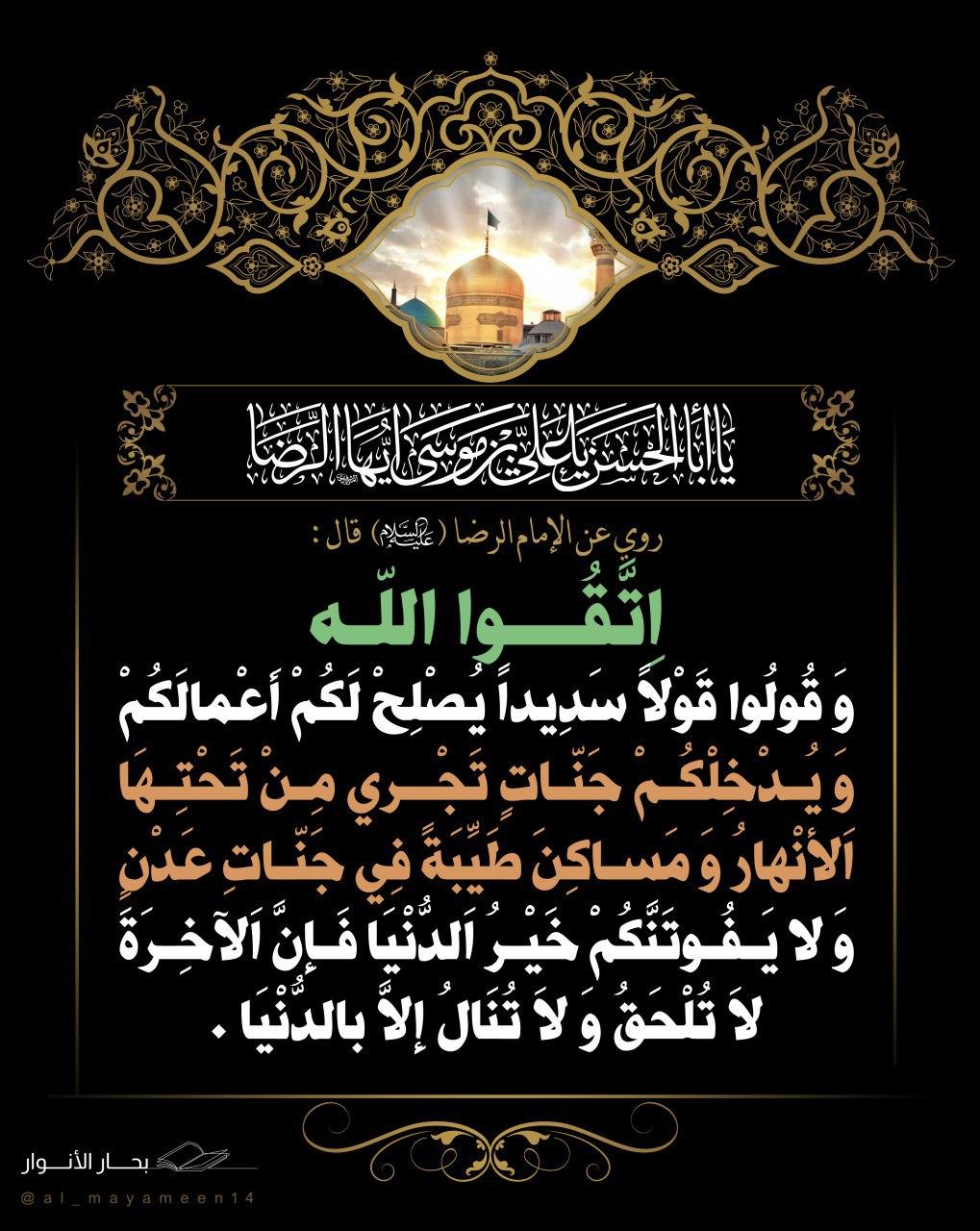 روي عن الامام الرضا (عليه السلام) قال :