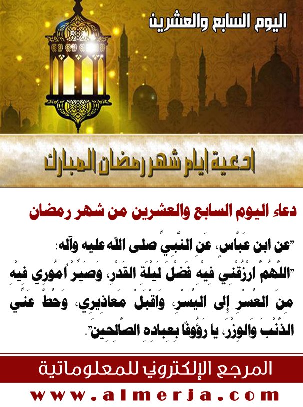 دعاء اليوم السابع والعشرين من شهر رمضان /