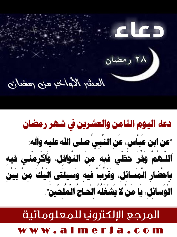 دعاء اليوم الثامن والعشرين من شهر رمضان /