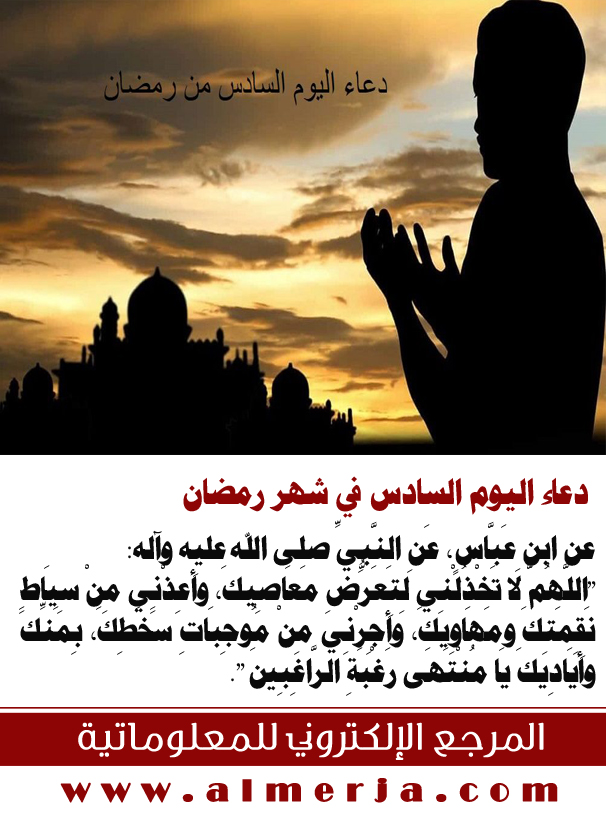 ثواب قراءة دعاء اليوم السادس/