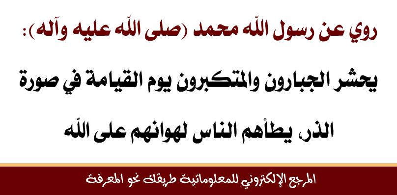 روي عن رسول الله محمد (صلى الله عليه وآله): يحشر الجبارون والمتكبرون يوم القيامة في صورة الذر، يطأهم الناس لهوانهم على الله