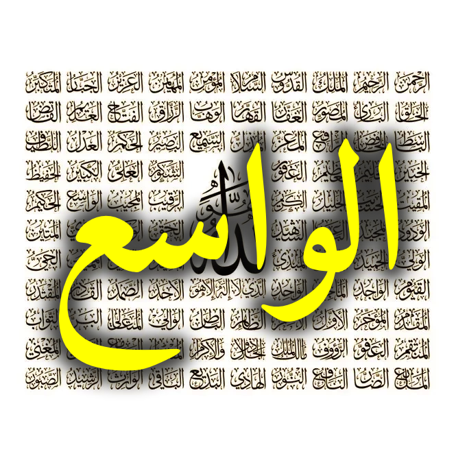 الوَاسِعُ: الذِي وَسِعَ غِنَاهُ مَفَاقِرَ عِبَادِهِ، وَوَسِعَ رِزقُهُ جَمِيعَ خَلقِهِ، وَهُوَ المُحيطُ بِعِلمِ كُلِّ شَيءٍ.