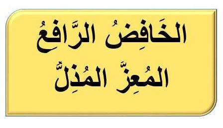 الخَافِضُ الرَّافِعُ: الذِي يَخفِضُ الكُفَّارَ بِالإِشقَاءِ وَيرفَعُ المُؤمِنِينَ بِالسَّعَادَةِ.