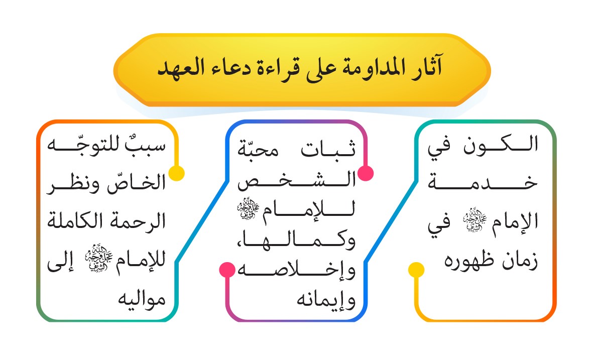 ذكر بعض العلماء أنّ من أهمّ آثار المداومة على هذا الدعاء [أي: دعاء العهد] هو ثلاثة أمور: