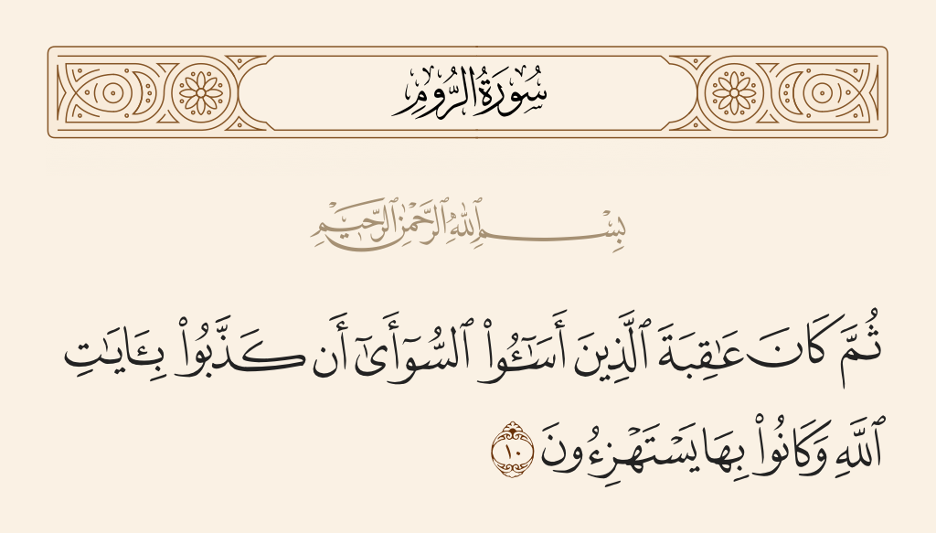 " إنّ حالة الرفض والابتعاد عن الله تعالى إذا ازدادت وكثرت فإنها تشكّل في القلب حالةً من النّفور والكره للحقّ. وإذا قويت حالة البغض هذه أكثر تتحوّل إلى عداءٍ ومحاربة للحق سبحانه والعياذ بالله. وهي حقيقةٌ صرّح بها القرآن الكريم في قوله تعالى: {ثُمَّ كَانَ عَاقِبَةَ الَّذِينَ أَسَاءُوا السُّوأَى أَنْ كَذَّبُوا بِآيَاتِ اللَّهِ وَكَانُوا بِهَا يَسْتَهْزِئُونَ} [الروم: 10] ".
