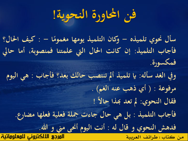 هذا حال النحو يوما موجود ويما غائب ، يوما حال ويوما محال.... احسنت صديقي العزيز. أعجبني