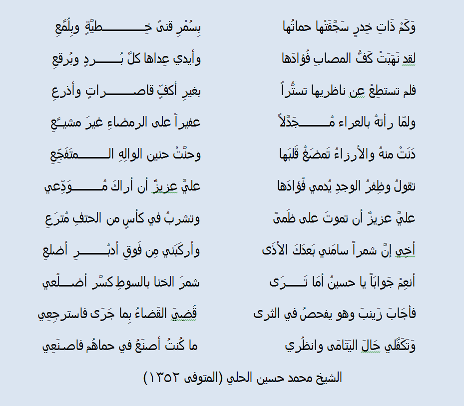 اعتلى جبل الابتلاء قبل مصرعه ورفع كف الدعاء :الهي عجت اليك الاصوات بصنوف اللغات ،فجازاه ربه الكريم بخلود سرمدي ، وعج اليه مختلف الافئدة تهوي الى ذلك الوادي ،باصناف لغاتها وبعد دارها ،وتجيب داعي الله بـلبيك يا حسين . أعجبني