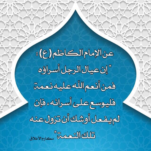 عن رسول الله صلى الله عليه وآله قال: (عيال الرجل أسراؤه وأحب العباد إلى الله عز وجل أحسنهم صنيعاً إلى أسرائه).