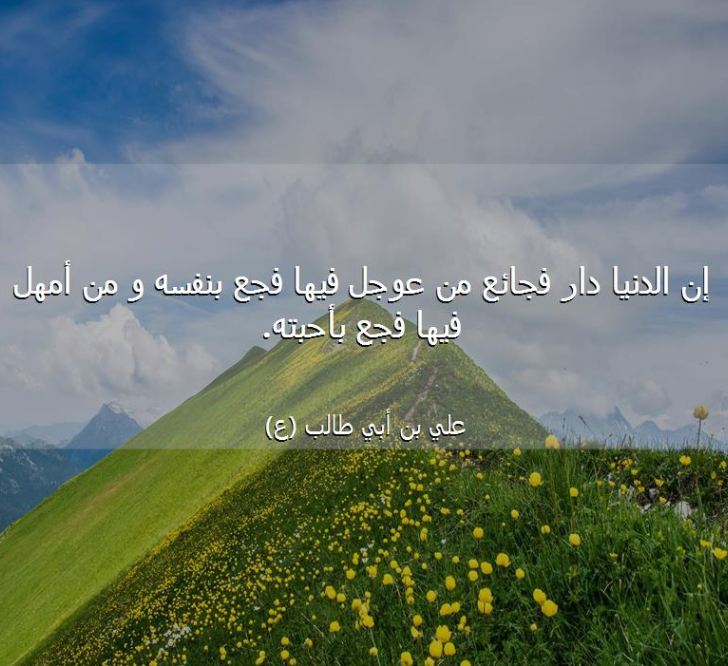 قال الإمام علي عليه السلام : (ان الدنيا دار فجائع من عُوجل فيها فُجع بنفسه، ومن أمهل فيها فُجع بأحبته).
