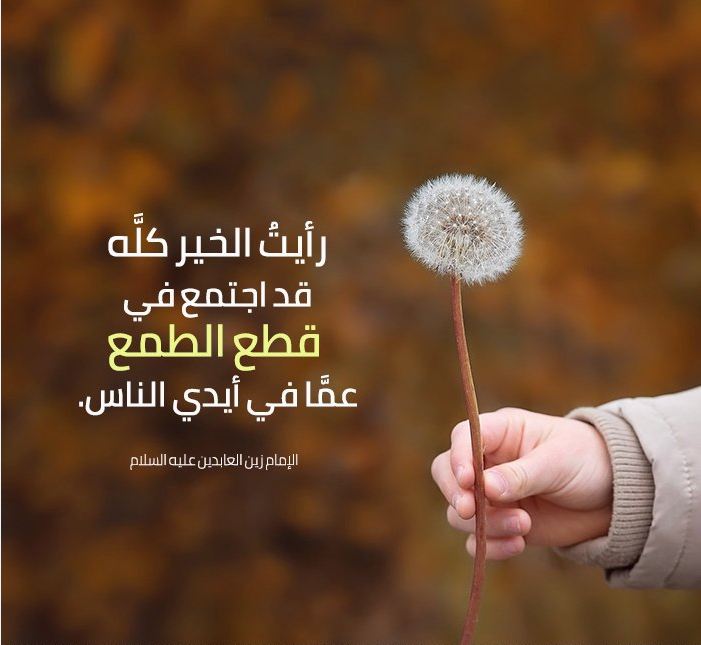 يقول الإمام علي بن الحسين عليه السلام : ( رأيت الخير كلّه قد اجتمع في قطع الطمع عما في أيدي الناس). الكافي لثقة الإسلام الكليني ج2 ص148.