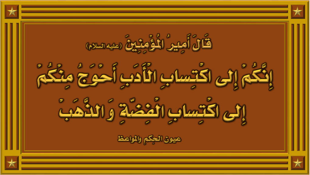 يقول أمير المؤمنين (عليه السلام) (انكم إلى اكتساب الأدب أحوج منكم إلى اكتساب الفضة والذهب).