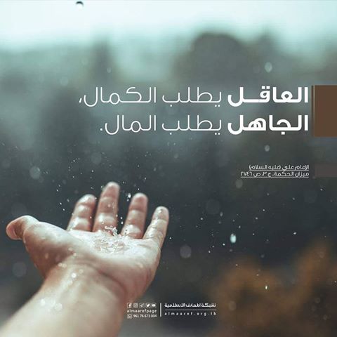 عن الإمام علي (عليه السلام) : العاقِلُ يَطلبُ الكمال ، الجاهلُ يَطلبُ المال .