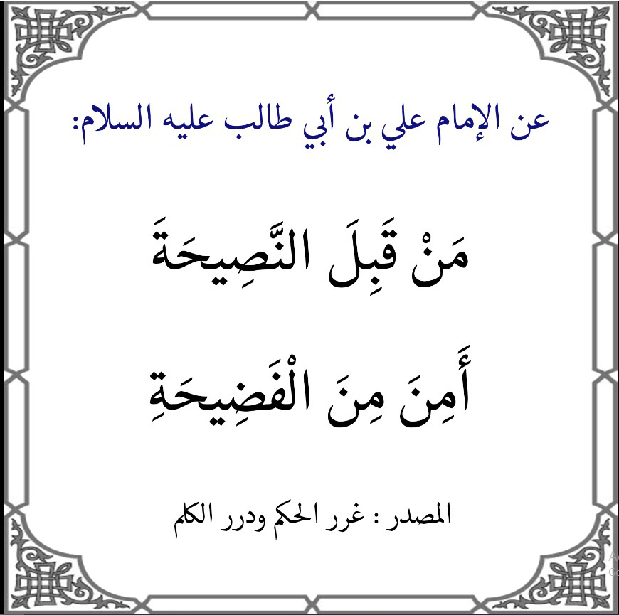 قال أمير المؤمنين علي عليه السلام: من قبل النصيحة سلم من الفضيحة.