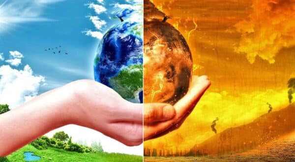 ـ ارتفاع درجة حرارة الأرض بسبب انبعاثات ثاني أكسيد الكربون الناتجة عن حرق الوقود الأحفوري.