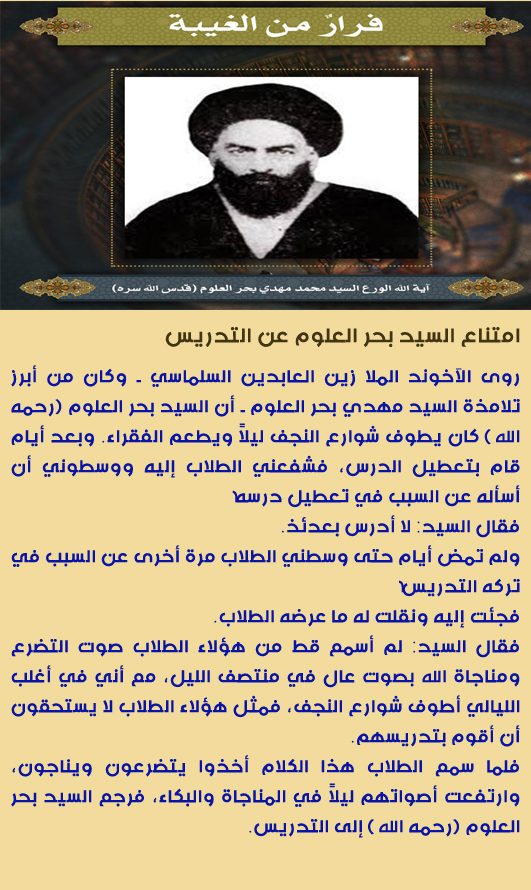 كان الشيخ مرتضى الأنصاري يتأخر في بعض الأيام عن التدريس، ولما سئل عن السبب في ذلك؟