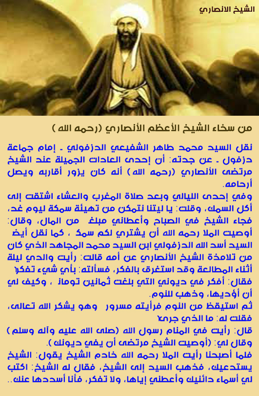 من سخاء الشيخ الأعظم الأنصاري (رحمه الله) ::