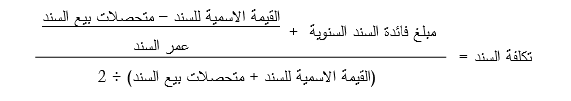 ﻓﻲ ﺣﺎل ﺗﺳﺎوت اﻟﻘيـﻣﺔ اﻟﺳوﻗيـﺔ ﻟﻠﺳﻧد ﺑﺎﻟﻘيـﻣﺔ اﻹﺳﻣيـﺔ ﻟﻪ ﺗﻛـون ﺗﻛﻠﻔـﺔ اﻟﺳـﻧد ﻋﻠـﻰ اﻟﺷـرﻛﺔ ﻫـﻲ ﻧﻔـس ﺳـﻌر اﻟﻔﺎﺋدة ﻋﻠﻰ اﻟﺳﻧد ، أﻣﺎ ﻓﻲ ﺣـﺎل ﻛﺎﻧـت اﻟﻘيـﻣـﺔ اﻟﺳـوﻗيـﺔ ﻟﻠﺳـﻧد ﺗﺧﺗﻠـف ﻋـن اﻟﻘيـﻣـﺔ اﻹﺳـﻣيـﺔ ﻓـيـﻣﻛن اﺣﺗﺳـﺎب ﺗﻛﻠﻔﺔ اﻟﺳﻧدات ﻣن ﺧﻼل اﺷﺗﻘﺎﻗﻬﺎ ﻣن ﻣﻌﺎدﻟﺔ ﺗﻘيـيـم اﻟﺳﻧدات وذﻟك ﺑﺈيـﺟﺎد ﻣﻌدل اﻟﻌﺎﺋد اﻟﻣطﻠوب(K)