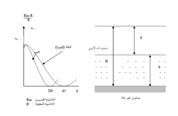 ب- الاستفادة من مياه الصرف الزراعي بإعادة استخدامها ، وتشير الدراسات الى الارتفاع الكبير في الفواقد المائية في الري السطحي بالدول العربية . وتوضح التجربة المجربة التالية اشكالية المياه الزائدة ومدن تأثيرها على إنتاجية المحاصيل :