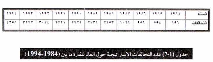 ومع نهاية الثمانينات قلت التحالفات بصيغة المؤسسات المالية المشتركة واستمرت بصيغة التحالفات التعاونية كحالها في الصناعات الاخرى حيث ان معدل التحالفات ازداد بمعدل (27%) سنوياً تقريبا منذ عام (1985) و يوضح الجدول (1) عدد التحالفات الاستراتيجية حول العالم للفترة ما بين (1984-1994).