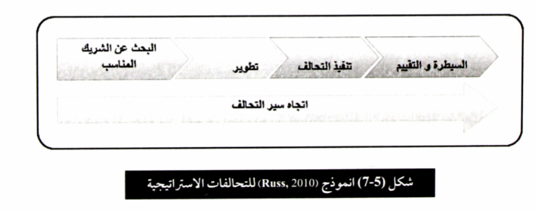 د. السيطرة و التقييم Control and Assessment: في هذه المرحلة يتم التأكد من انه تم ادراك الاهداف من وراء التحالف وذلك من خلال تقييم الفوائد التي اضيفت جراء التحالف لكل منظمة والشكل (5-7) يوضح انموذج(Russ).