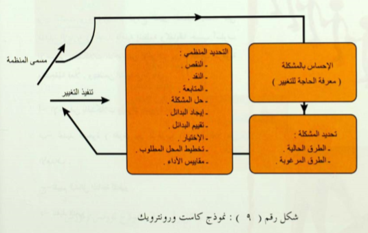 يرى كاست ورونزويك أن نموذج التغيير المخطط يعتمد على القابلية الادارية في تحديد فاعلية المنظمة وكفاءتها حسب أسلوب الإحساس بالمشكلات الناجمة من الانحراف بين الأهداف المرغوبة والمتحققة فعلاً ، ويتضمن النموذج ما يأتي :