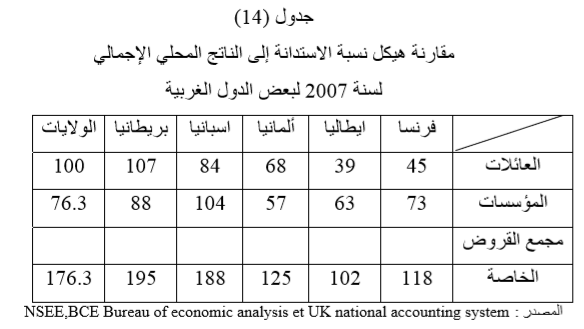 أن ﻣﺎ ﻳﺠﻠﺐ اﻻﻧﺘﺒﺎﻩ وﻣﻦ ﺧﻼل ﻧﻈﺮة ﻣﺘﻔﺤﺼﺔ ﻟﻠﺠﺪول اﻟﺴﺎﺑﻖ (14) هـﻮ ارﺗﻔﺎع ﻧﺴﺒﺔ ﻗﺮوض اﻟﻌﺎﺋﻼت إﻟﻰ اﻟﻨﺎﺗﺞ اﻟﻤﺤﻠﻲ اﻹﺟﻤﺎﻟﻲ ﻓﻲ ﺑﻌﺾ اﻟﺒﻠﺪان اﻟﻐﺮﺑﻴﺔ وﻻﺳﻴﻤﺎ ﻓﻲ اﻟﻮﻻﻳﺎت اﻟﻤﺘﺤﺪة وﺑﺮﻳﻄﺎﻧﻴﺎ واﺳﺒﺎﻧﻴﺎ واﻟﺘﻲ ﻓﺎﻗﺖ ﺑﻜﺜﻴﺮ اﺳﺘﺪاﻧﺔ اﻟﻤﺆﺳﺴﺎت وﻳﺮﺟﻊ ذﻟﻚ ﻟﻸﺳﺒﺎب اﻵﺗﻴﺔ (1):