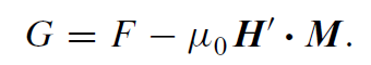 Forces in thermodynamics are related to the gradient of the free energy, which represents the ability of the system to do work. The Gibbs free energy when H' and T are the independent variables isG = U − T S − μ0H' · M. From (i),