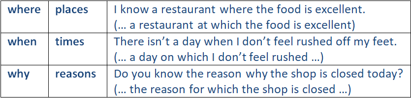 Relative pronouns: when, where and why