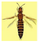 حشرة صغيرة الحجم ذات لون أصفر فاتح أو مائل إلى البني، وأجنحتها ضيقة عليها أهداب طويلة، للأنثى آلة وضع بيض منشارية.
