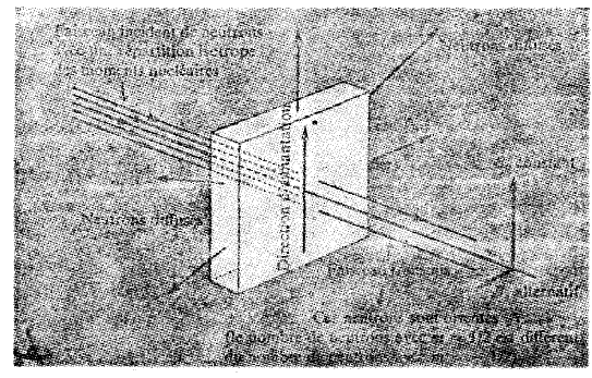 الفكرة الرئيسية (1936 Bloch) متعلقة بإمكانية الحصول على حزمة من النترونات المستقطبة جزئياً وذاك باستخدام الإنتثار بوسط ممغنط . ندخل آلية الإنتثار للنترونات تأثير متبادل بين μn و μA العزم المغناطيسي لذرات الجسم الناثر إذا كان الجسم الناثر هو مادة ذات مغناطيسية حديدية ممغنطة حتى الإشباع كل العزوم μA لها نفس الاتجاه وعدد النترونات المنتثرة ستعتمد على الزاوية بين العزوم μn للنترونات الساقطة واتجاه المغنطة (aimantation) .